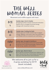 Join us for the 1st of a 4 series workshop where fitness and menopause support come together. Each session begins with a 45 minute workout, followed by a fun and education conversation lead by local authors and menopause experts: The Menopause Girls. The cost for all 4 sessions is $119, and includes a copy of the book: The Girlfriends' Guide to Menopause. Chamber members can save 20% using code: WSFwellness20